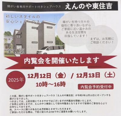 この度、障がい者専用サポート付きシェアハウス 「えんのや東住吉」 が、